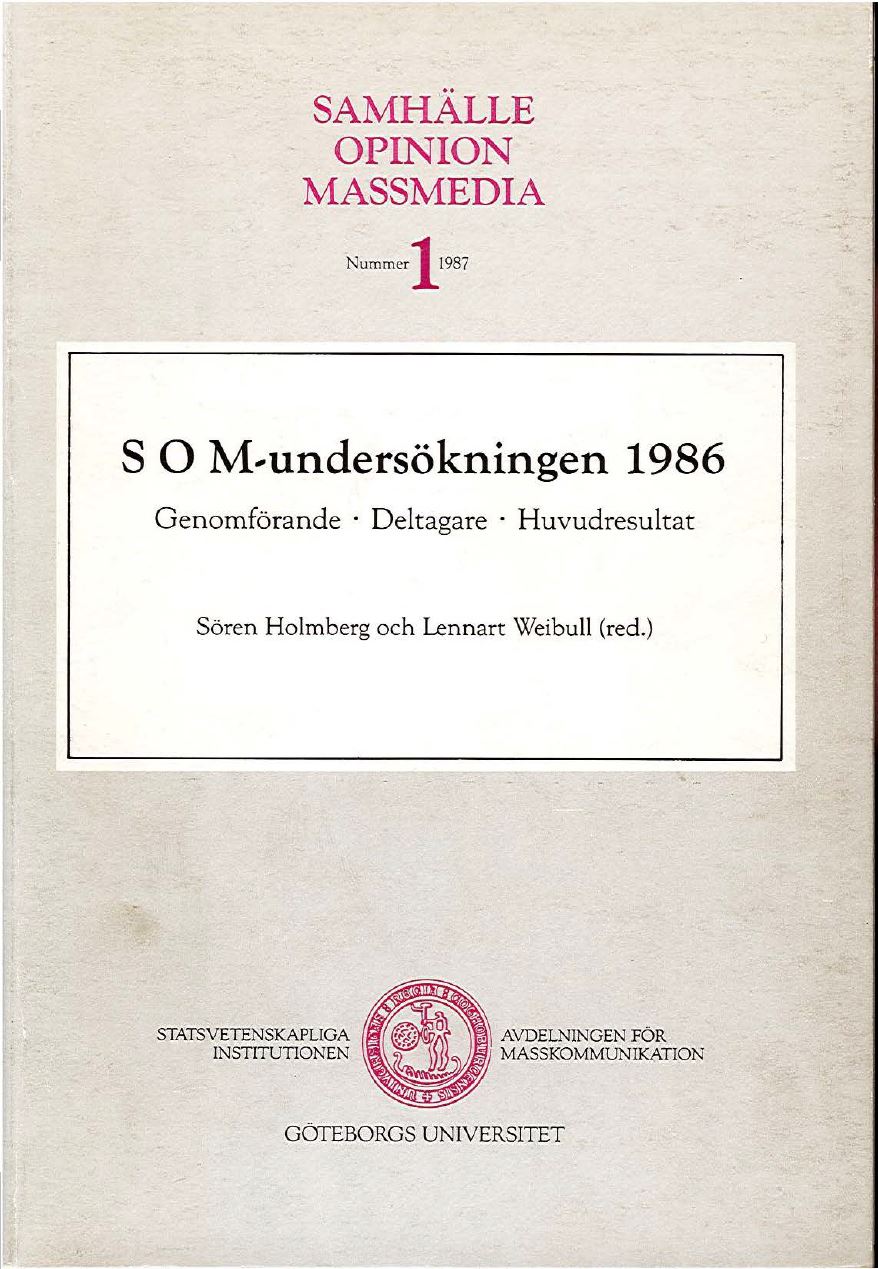 Holmberg, S. & Weibull, L. (1987, red.) SOM-undersökningen 1986. SOM-antologi 1, Göteborgs Universitet.